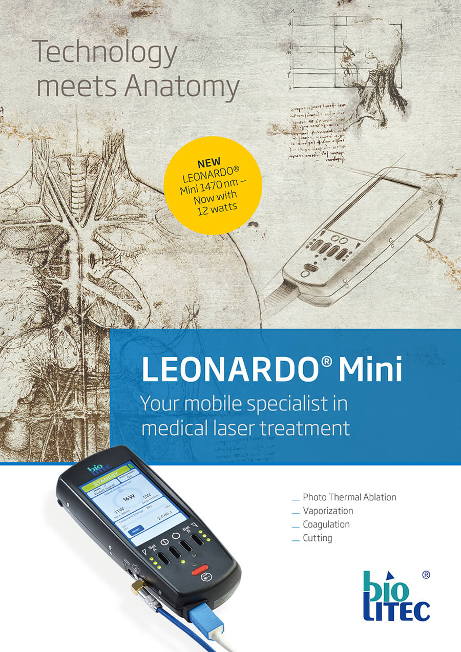 The success of biolitec®’s LEONARDO® Dual laser was the motivation to create the LEONARDO® Mini. The proven reliability of our diode laser systems inspired the introduction of a versatile and small platform for a wide range of in-office applications.